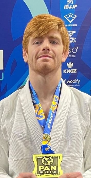 Jonathan Fennell is commonly referred to as “Sunshine” due to his bright red hair and sunny disposition. Currently, he holds the rank of black belt. He began his jiu-jitsu journey by studying traditional Japanese jiu-jitsu (all that was available in the area at the time) in 2012 in a small town in South Carolina at the age of 15.